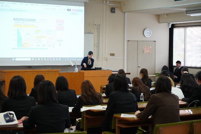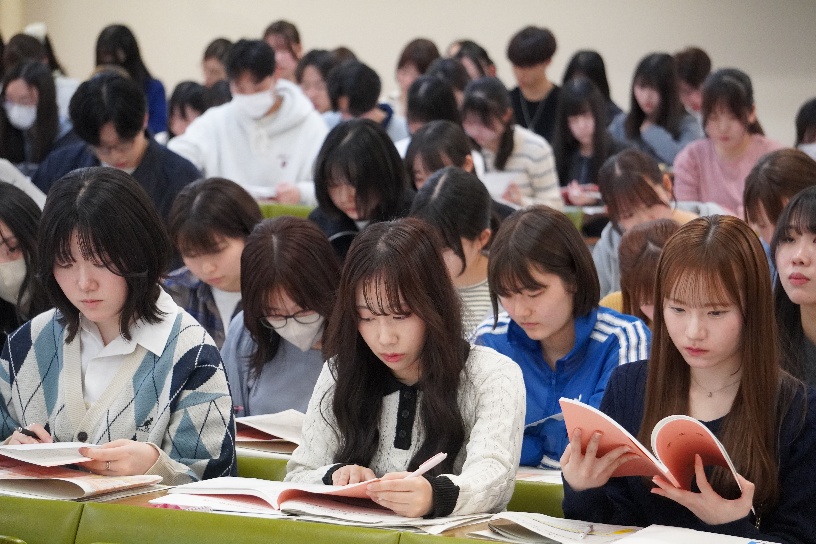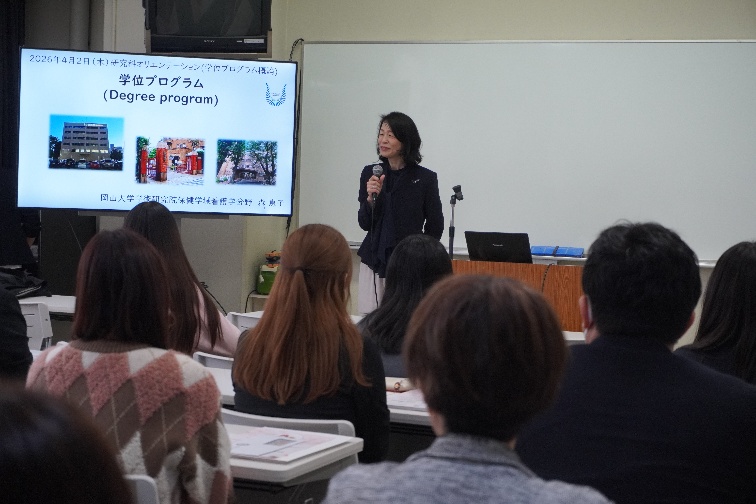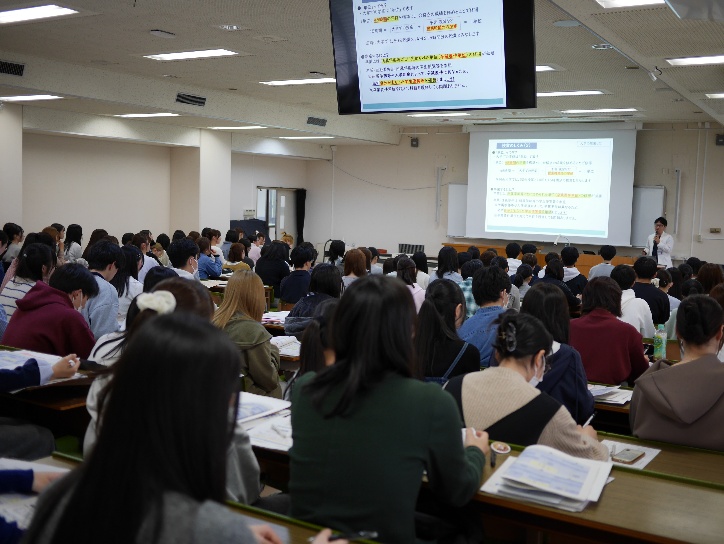 看護学専攻(学部)では、履修に関するガイダンスや留学に関する案内が行われ、新たな学びのスタートに向けた説明がなされました。新入生の皆さんは、これからの学生生活に期待を膨らませながら、真剣な表情で説明に耳を傾けていました。
